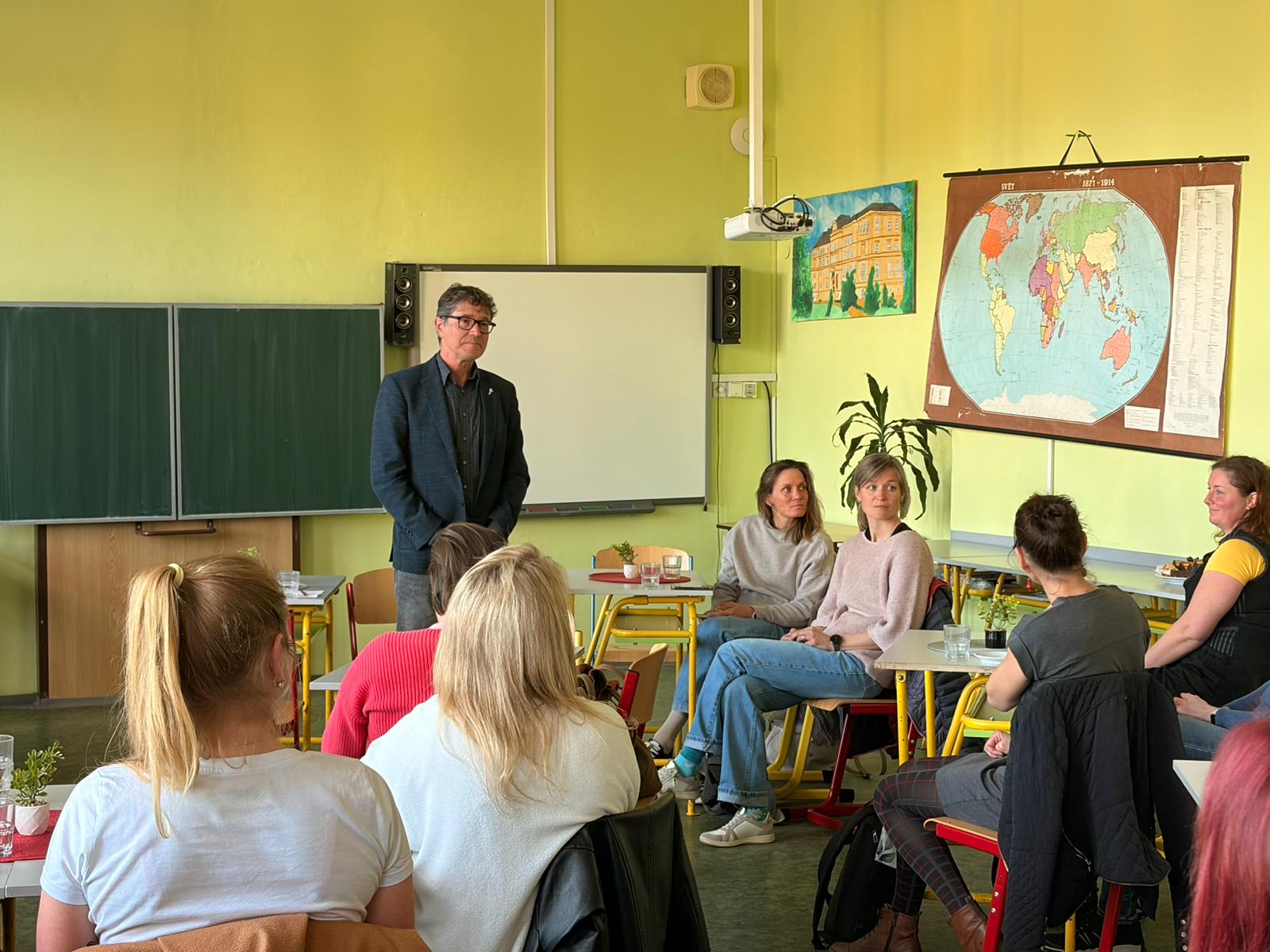Ve středu 22. dubna 2026 se v naší škole uskutečnilo další setkání v rámci „Kavárny pro rodiče – Hovory na T. G. M.“, tentokrát na téma Zdravý životní styl a prevence v dětském věku. Pozvání přijal MUDr. Martin Gregora, primář dětského oddělení Nemocnice Strakonice a zkušený pediatr, který rodičům přiblížil řadu důležitých oblastí týkajících se zdraví dětí.